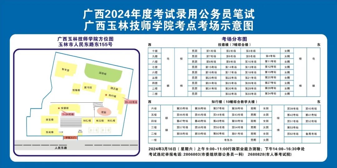 廣西2024年度考試錄用公務(wù)員(選調(diào)生)筆試將于3月16日舉行,為進一步提升玉林考區(qū)服務(wù)保障質(zhì)量,現(xiàn)就有關(guān)注意事項提示如下,請廣大考生做好應(yīng)試準(zhǔn)備工作,準(zhǔn)確掌握考試時間、考點地址及相關(guān)注意事項。