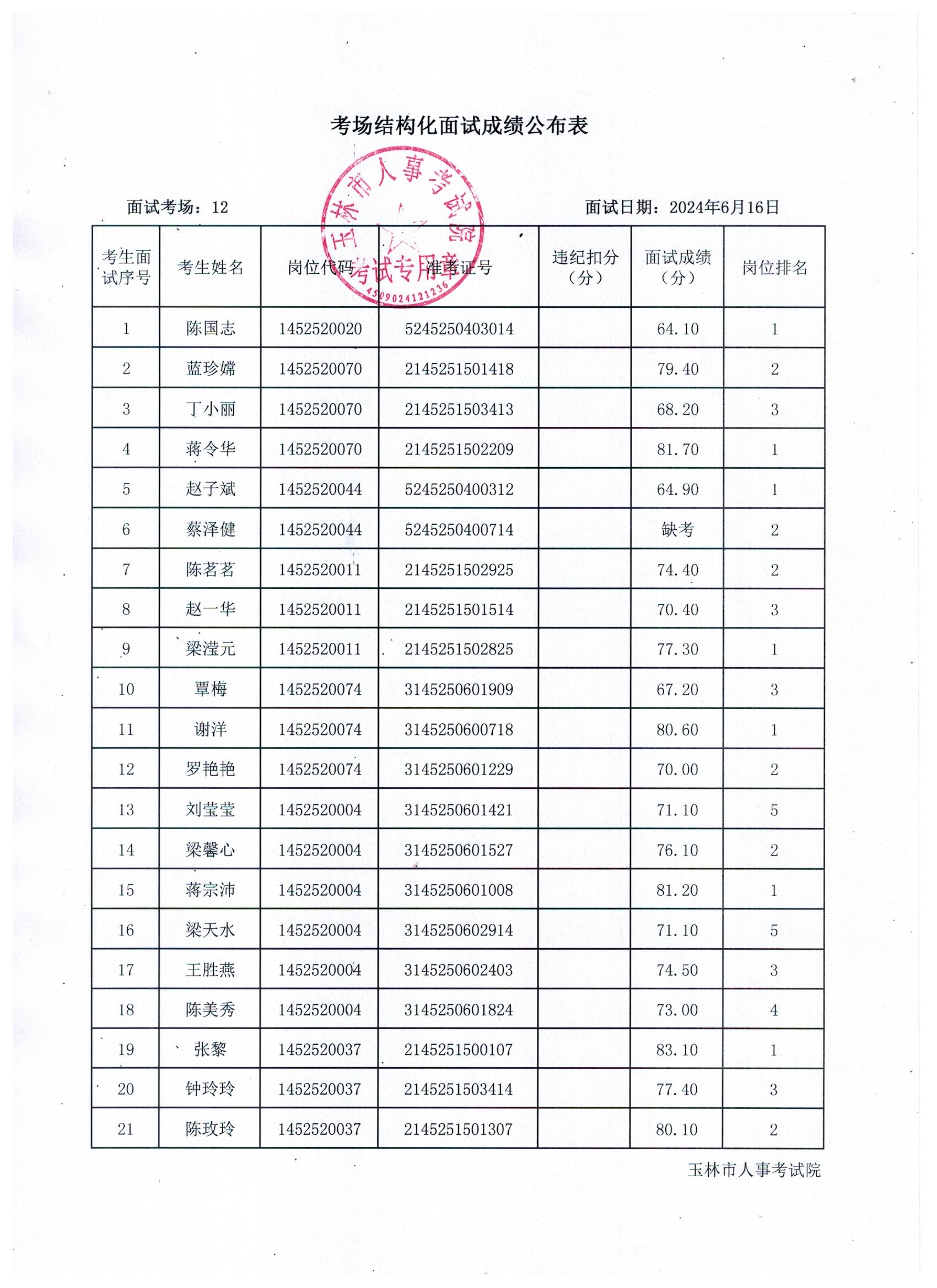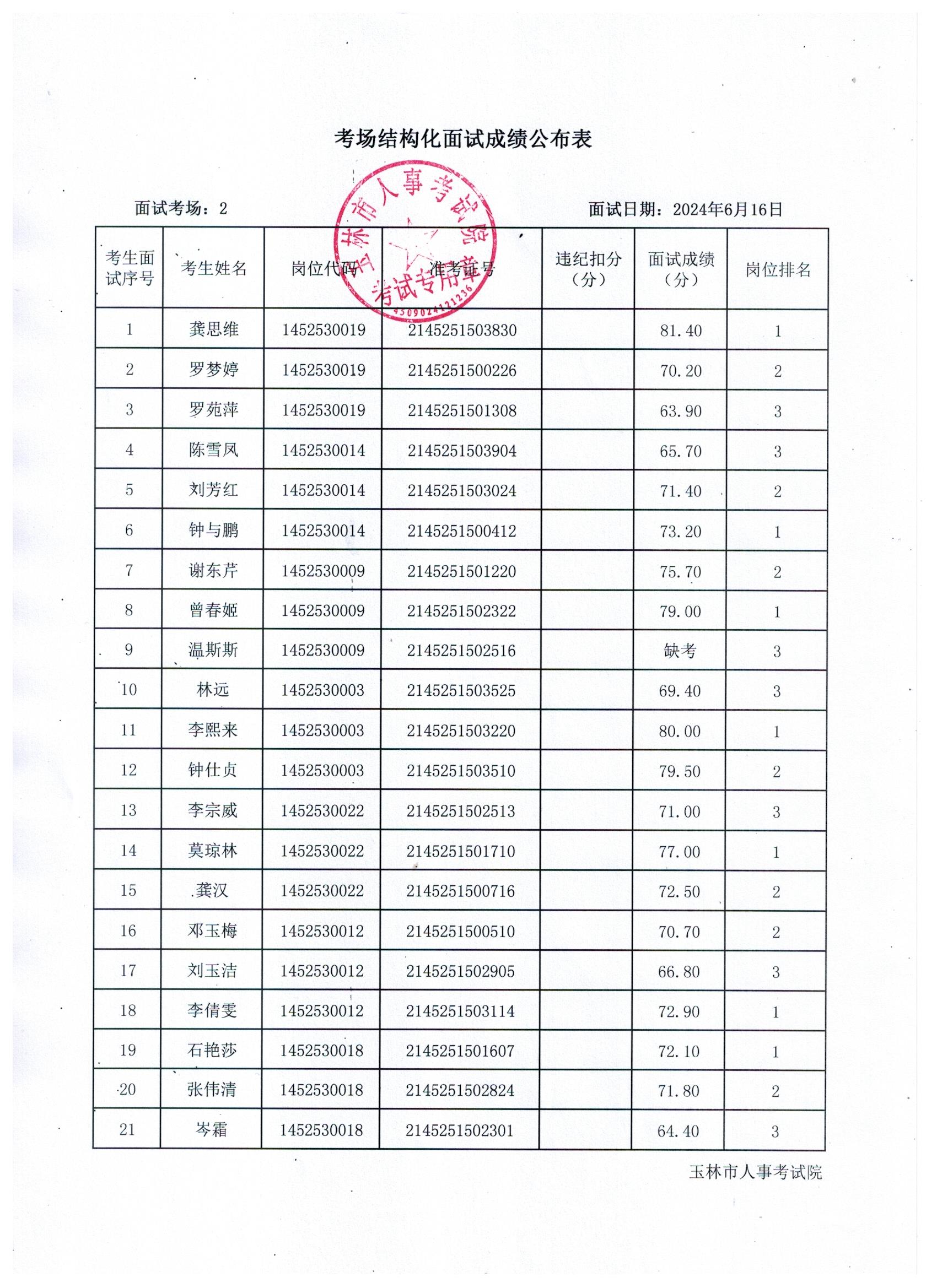原文標(biāo)題:2024年玉林市直(含玉州區(qū)、福綿區(qū)、玉東新區(qū))事業(yè)單位公開招聘人員面試成績公布(6月16日)