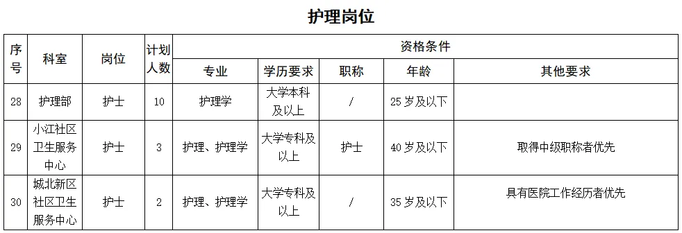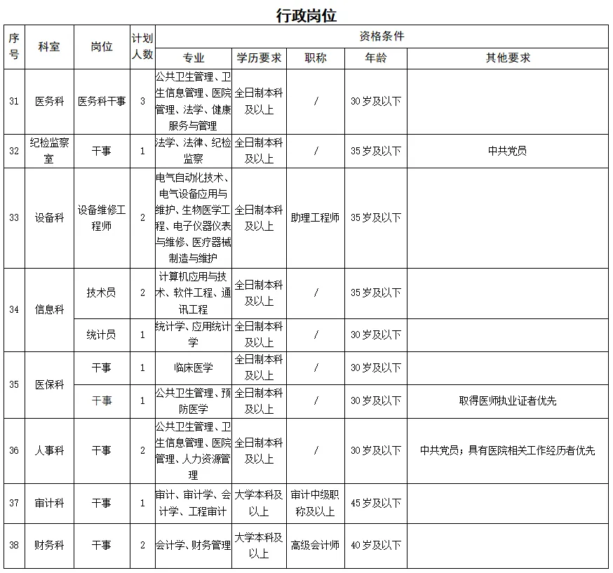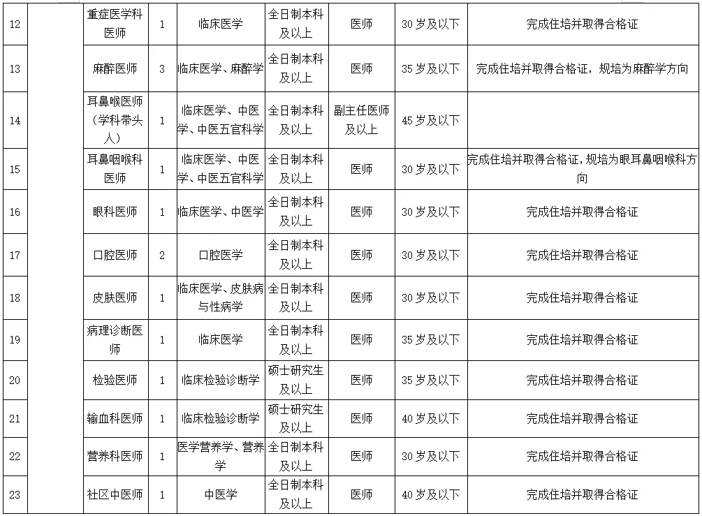 備注:醫(yī)學(xué)類(lèi)碩士研究生及以上學(xué)歷、醫(yī)學(xué)類(lèi)副高及以上職稱(chēng)者不受招聘專(zhuān)業(yè)及名額限制。