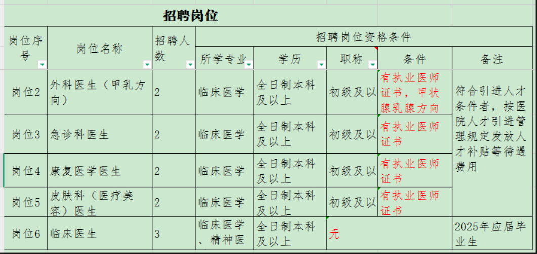 根據(jù)醫(yī)院業(yè)務(wù)發(fā)展需求,現(xiàn)向社會(huì)公開招聘以下崗位人員,具體招聘事宜如下: