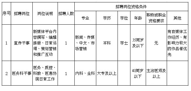 根據(jù)醫(yī)院發(fā)展需求,現(xiàn)面向社會,公開招聘工作人員