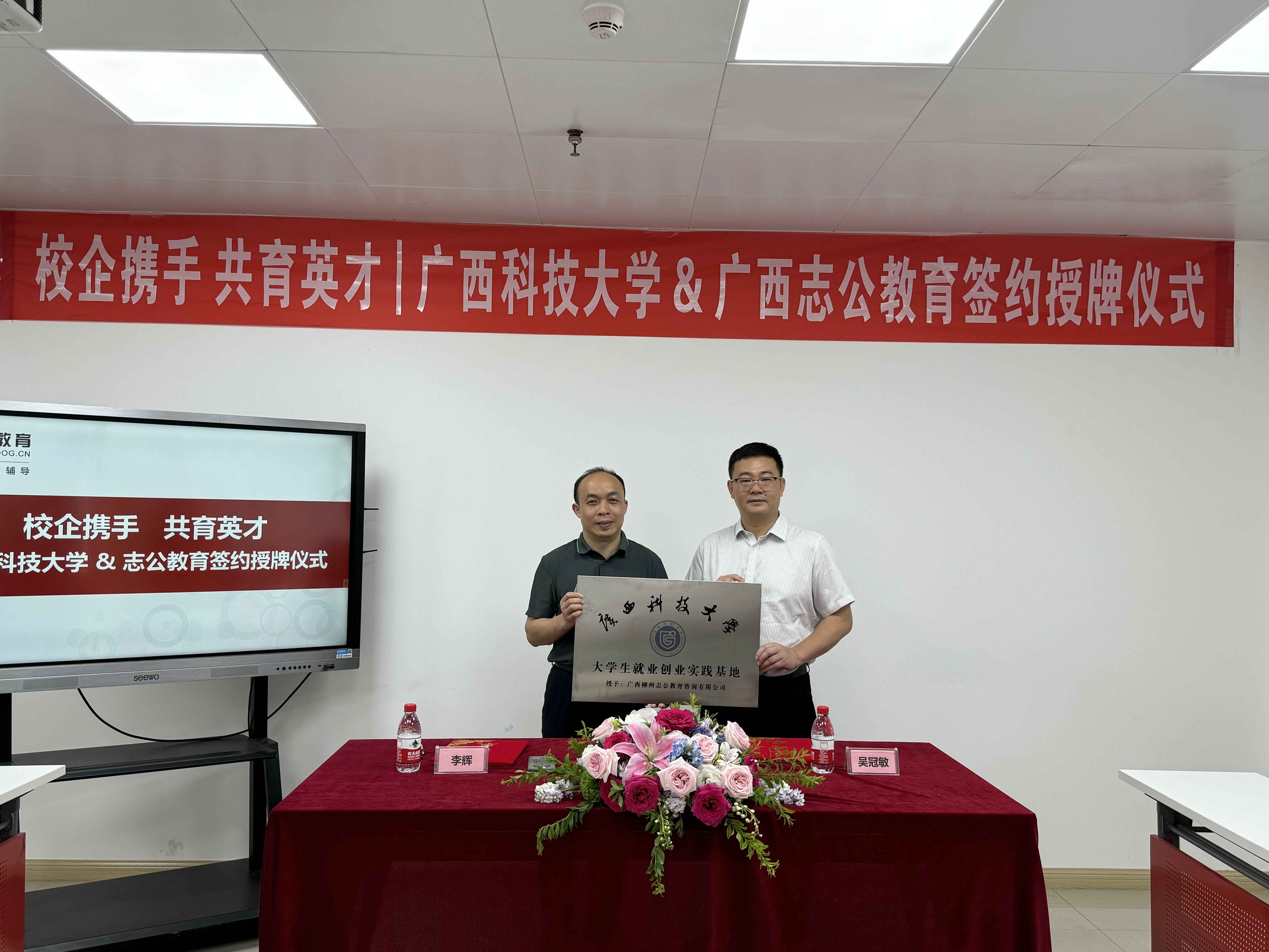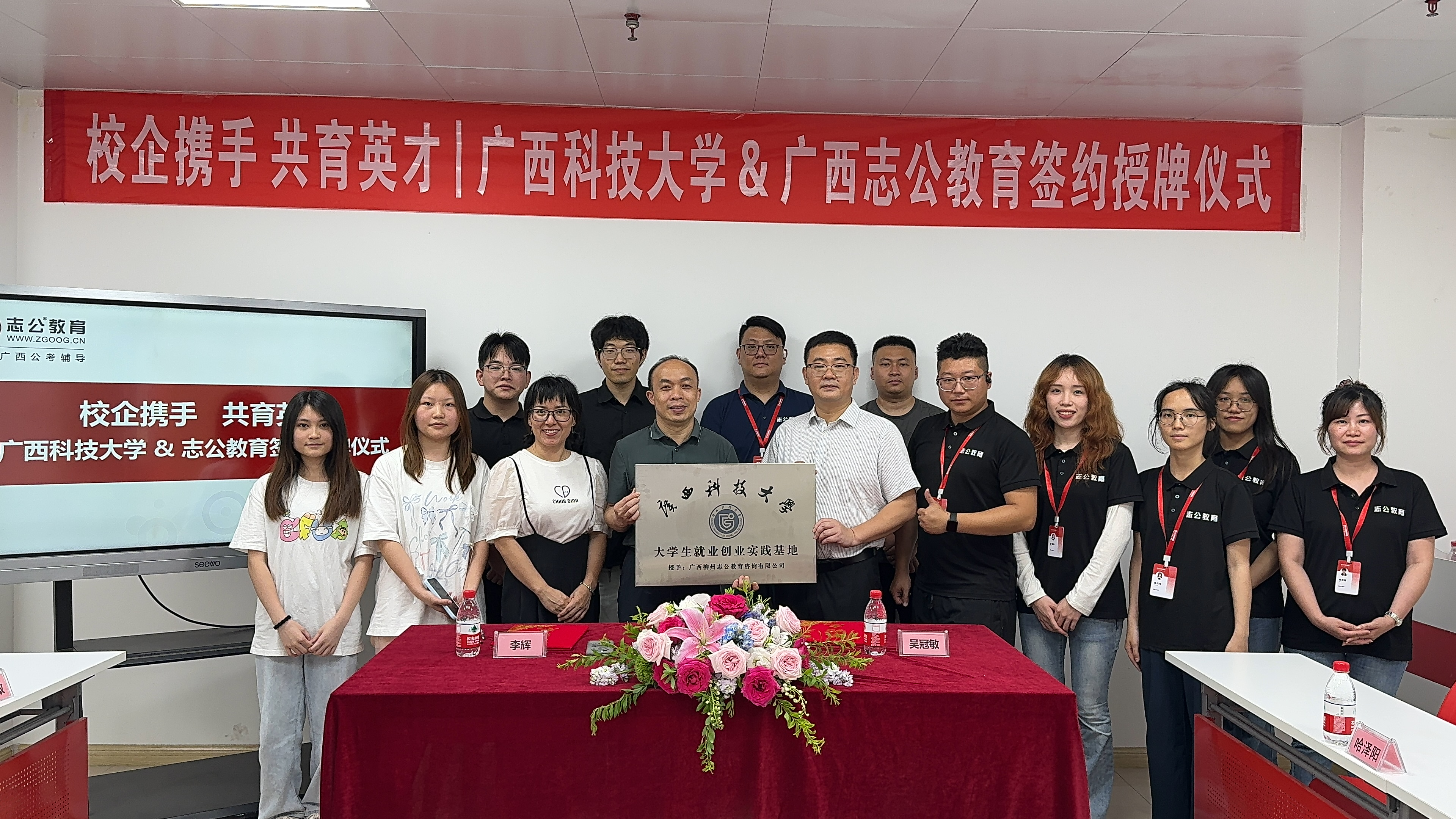2025年5月9日,志公教育柳州分校與廣西科技大學(xué)外國(guó)語學(xué)院在深入交流與友好協(xié)商的基礎(chǔ)上,于廣西科技大學(xué)成功舉行戰(zhàn)略合作簽約儀式。此次活動(dòng)由志公教育CBG總經(jīng)理吳冠敏先生帶隊(duì),廣西科技大學(xué)外國(guó)語學(xué)院黨委書記李輝、廣西科技大學(xué)"種夢(mèng)領(lǐng)航"工作室負(fù)責(zé)人張林微及師生代表共同參與,標(biāo)志著雙方在產(chǎn)教融合、人才培養(yǎng)及大學(xué)生就業(yè)創(chuàng)業(yè)領(lǐng)域的合作邁入新階段。