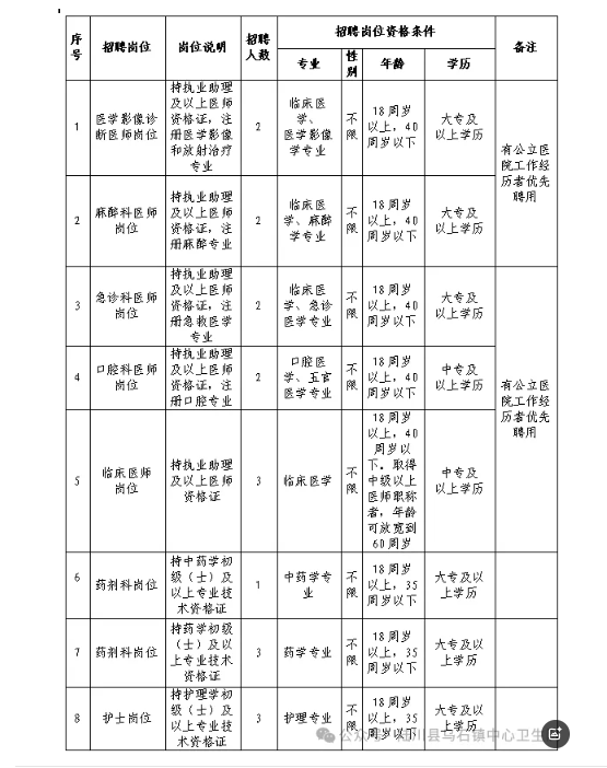 原文標(biāo)題:陸川縣烏石鎮(zhèn)中心衛(wèi)生院公開(kāi)招聘編外人員公告