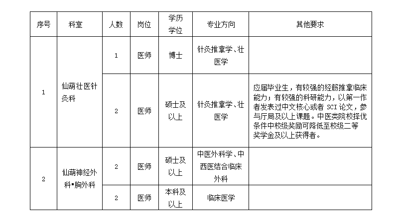 原文標題:仙葫壯醫(yī)針灸科、仙葫神經(jīng)外科?胸外科招聘公告