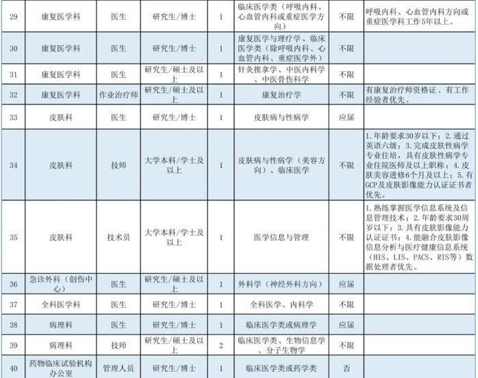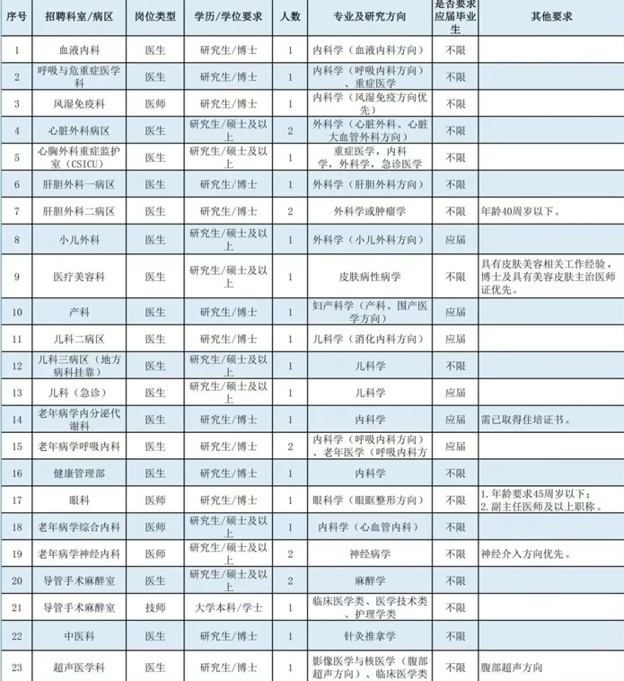 博士崗位:全年長期招聘(我院將根據(jù)報名情況分批次安排面試,具體以醫(yī)院通知為準(zhǔn)),崗位招滿即關(guān)閉報名通道。
