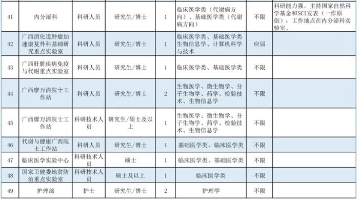 2.符合《廣西醫(yī)科大學(xué)第一附屬醫(yī)院高層次人才引進(jìn)管理實施辦法》條件者,可按相關(guān)程序認(rèn)定,并享受安家費、科研啟動基金等優(yōu)厚待遇(詳見附件1)。