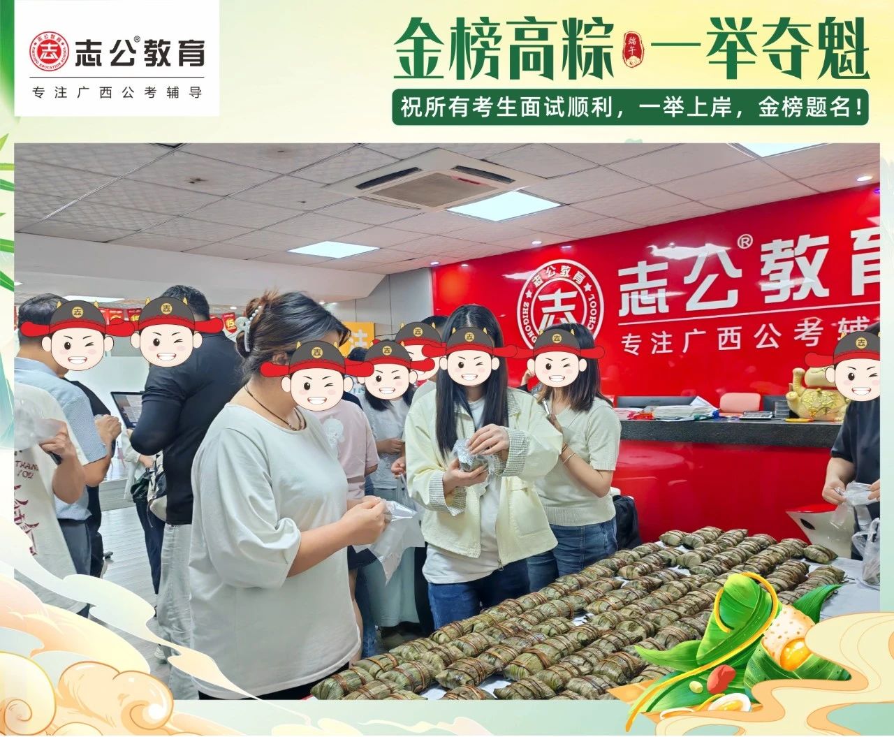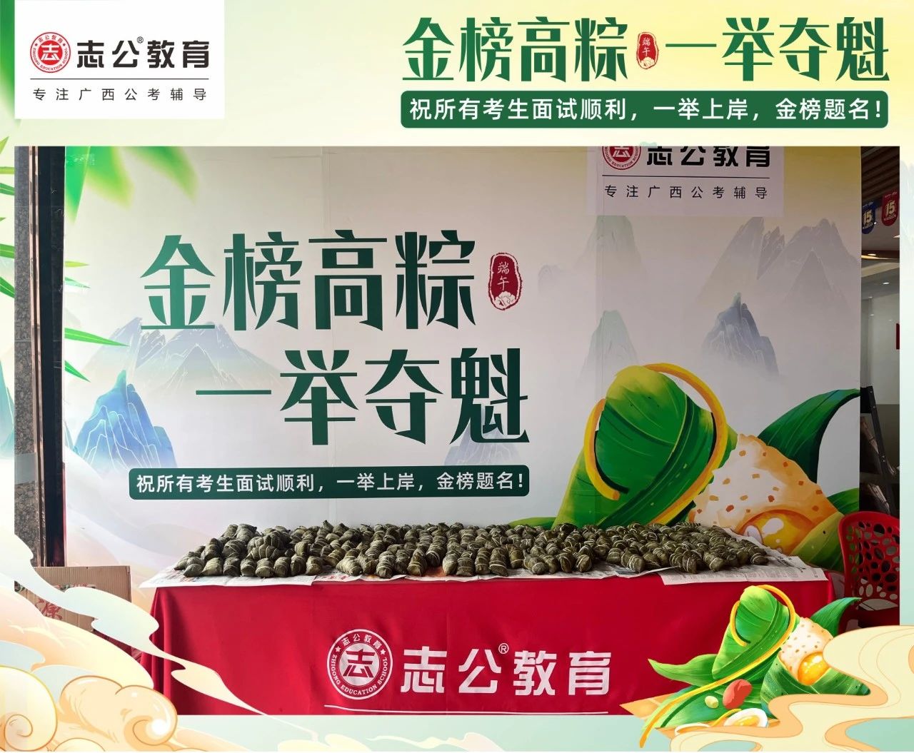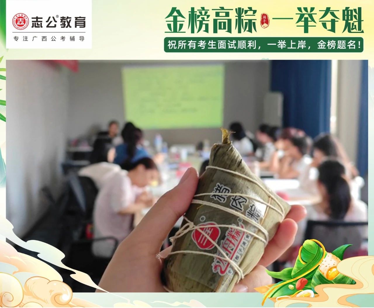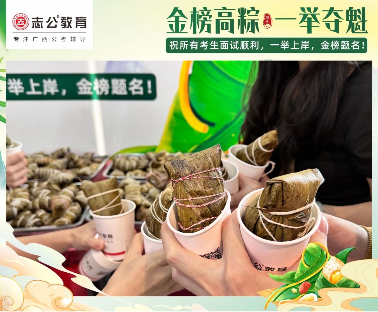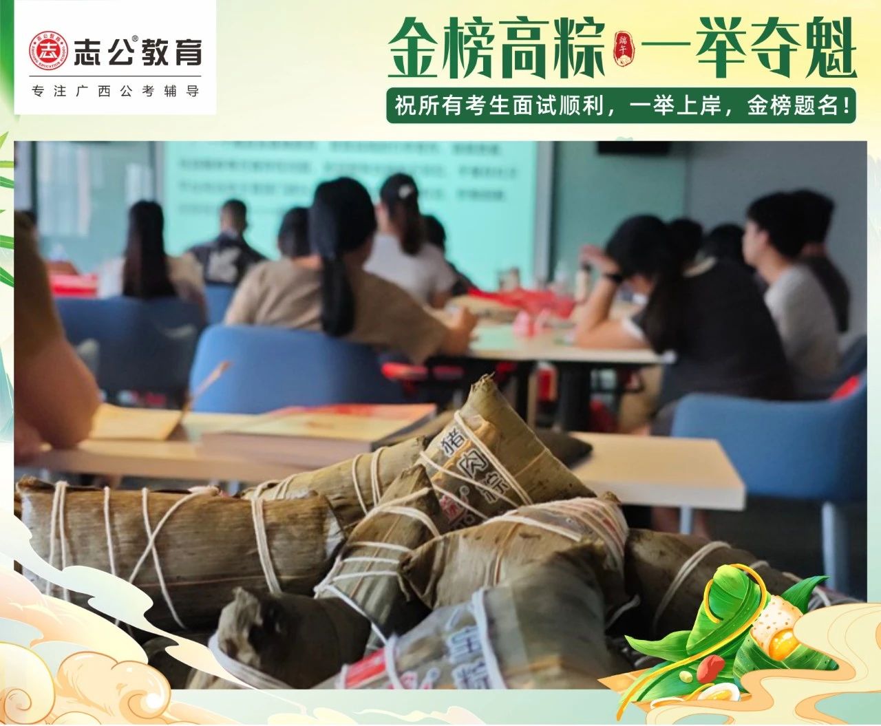 我們深知每一位學(xué)員為夢想努力奮斗的不易。在這個端午節(jié),志公教育特別為地市學(xué)員準備了剛出爐的新鮮粽子。希望大家在品嘗粽子的同時,能感受到我們的支持與鼓勵,在接下來的考試中一舉高 “粽”,實現(xiàn)自己的夢想。