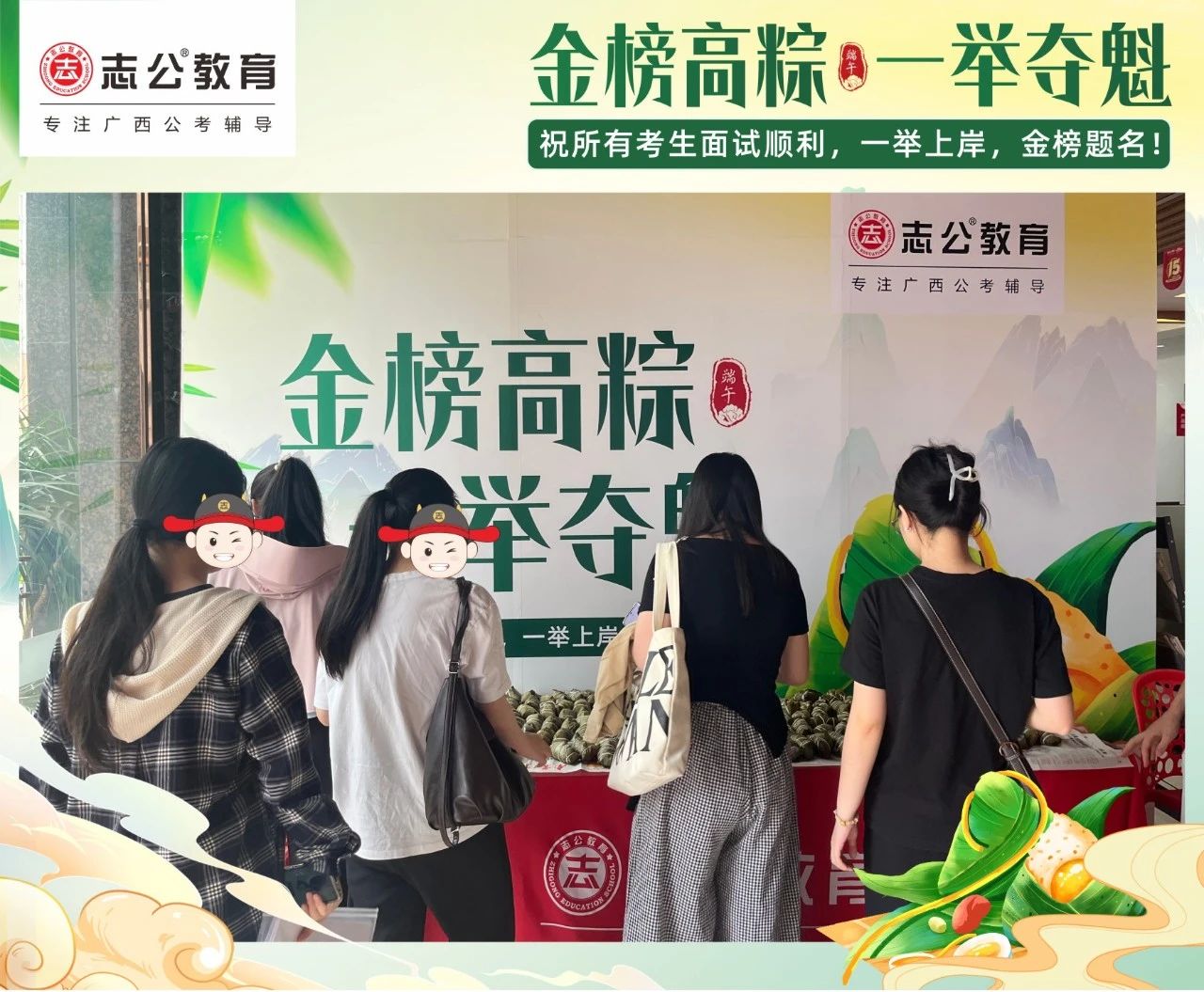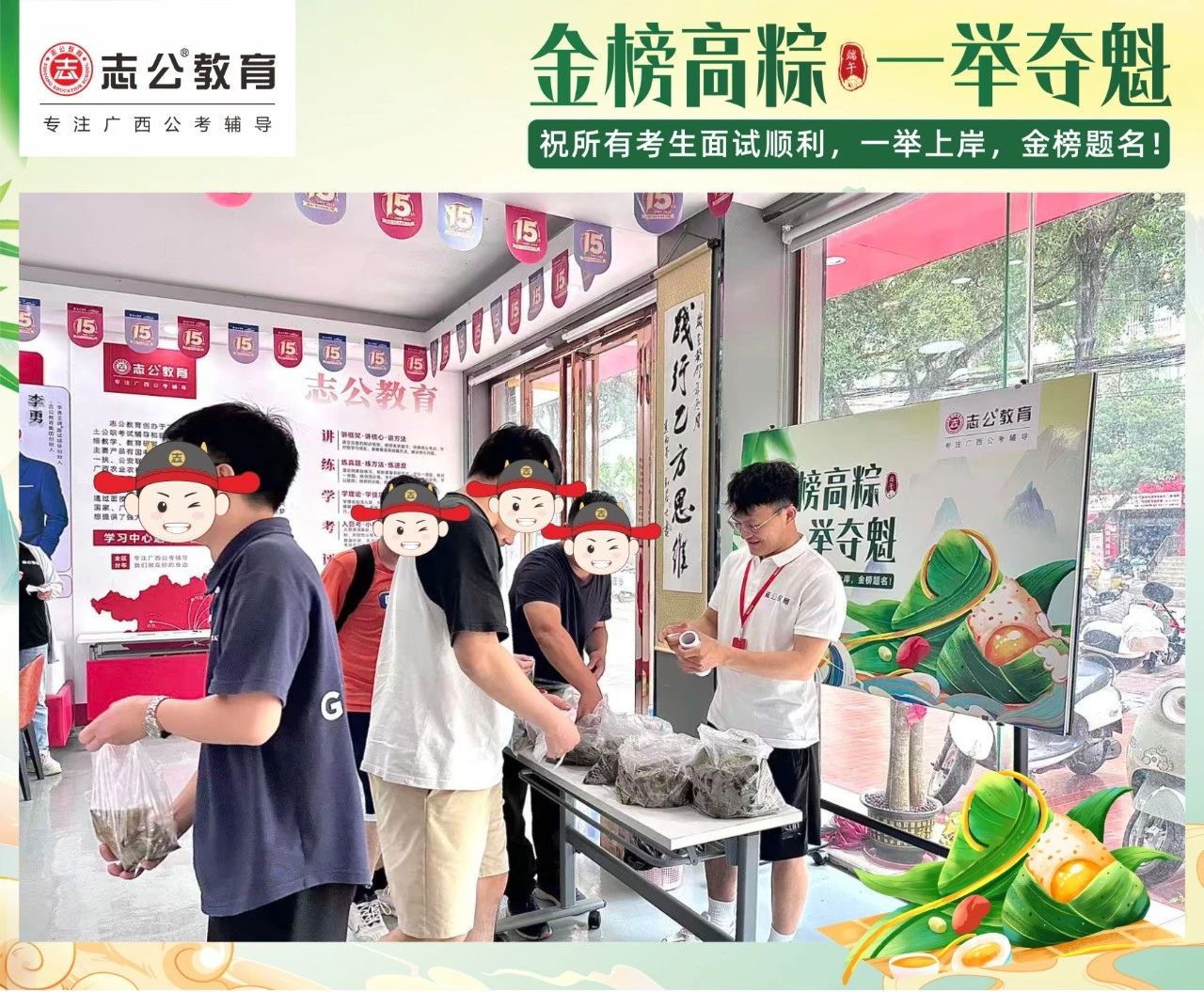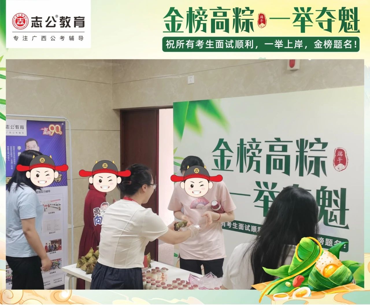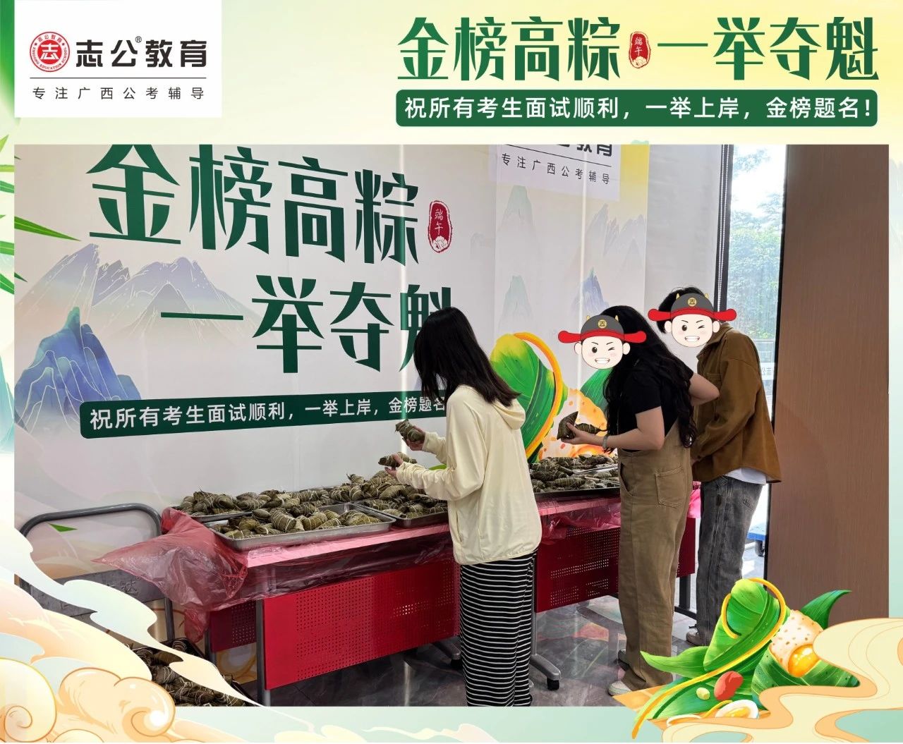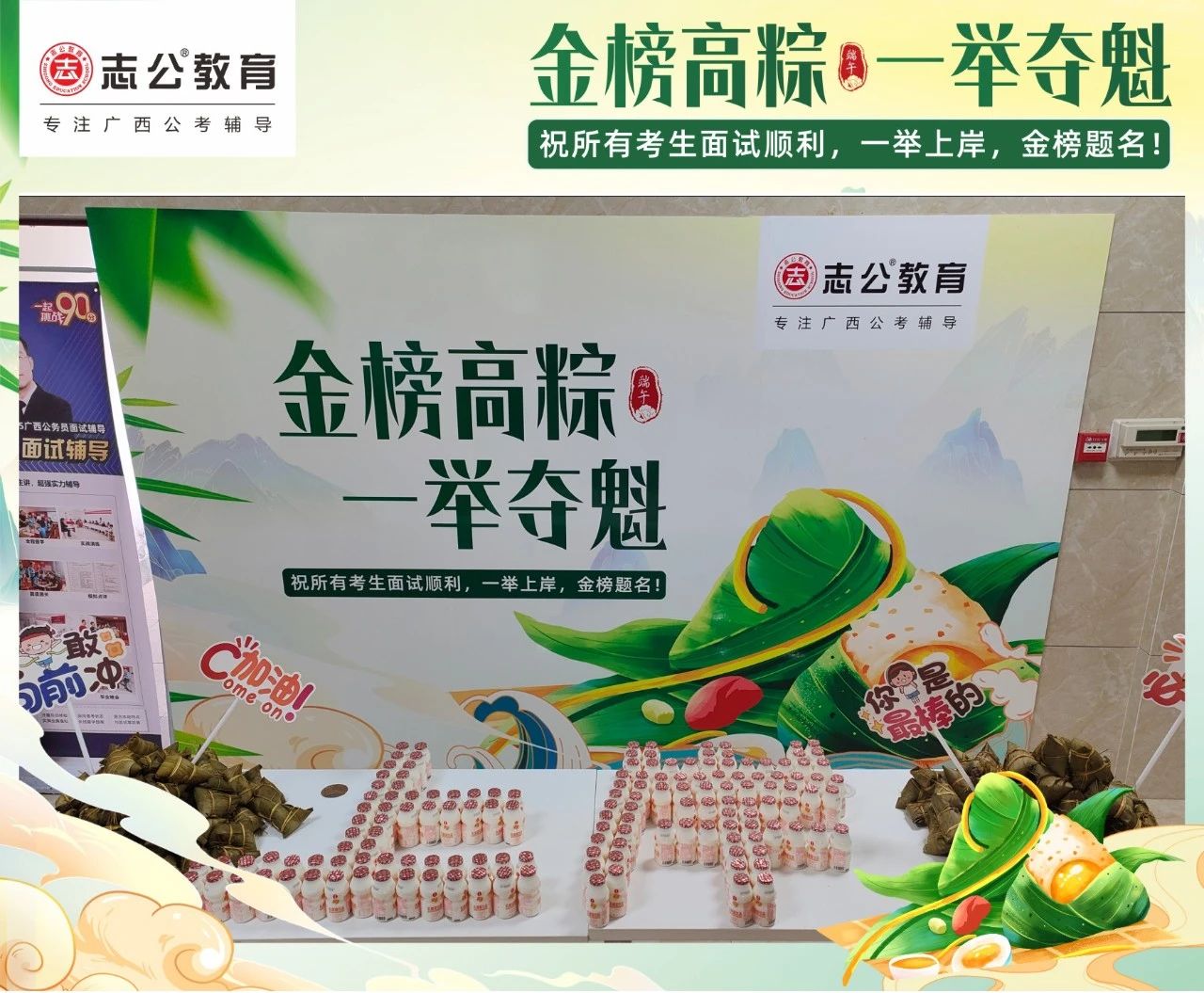 最后,再次祝愿大家端午節(jié)安康,六一兒童節(jié)快樂!愿志公教育每位員工在雙節(jié)的喜慶氛圍中,收獲滿滿,幸福常伴!也愿志公教育每位學(xué)員吃上粽子一舉高“粽”,實現(xiàn)自己的公職夢想!