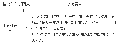 我院因業(yè)務(wù)發(fā)展需要,決定面向社會(huì)公開招聘中醫(yī)科醫(yī)生2人,現(xiàn)將有關(guān)事項(xiàng)公告如下: