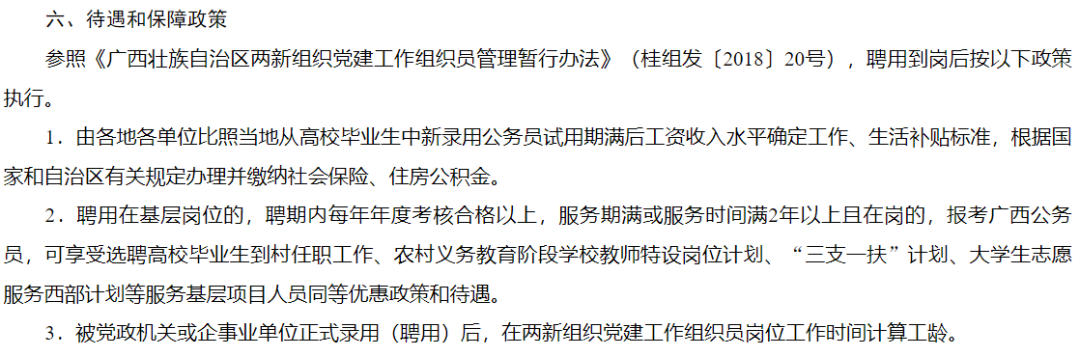 如果是符合條件的黨員朋友可要抓住這次機(jī)會了??,不僅“由各地各單位比照當(dāng)?shù)貜母咝.厴I(yè)生中新錄用公務(wù)員試用期滿后工資收入水平確定工作、生活補(bǔ)貼標(biāo)準(zhǔn),根據(jù)國家和自治區(qū)有關(guān)規(guī)定辦理并繳納社會保險(xiǎn)、住房公積金。”服務(wù)期滿還參照三支一扶等服務(wù)基層項(xiàng)目人員同等優(yōu)惠政策和待遇,而且!這個(gè)考試只用筆試,不用面試,香,實(shí)在是太香了!