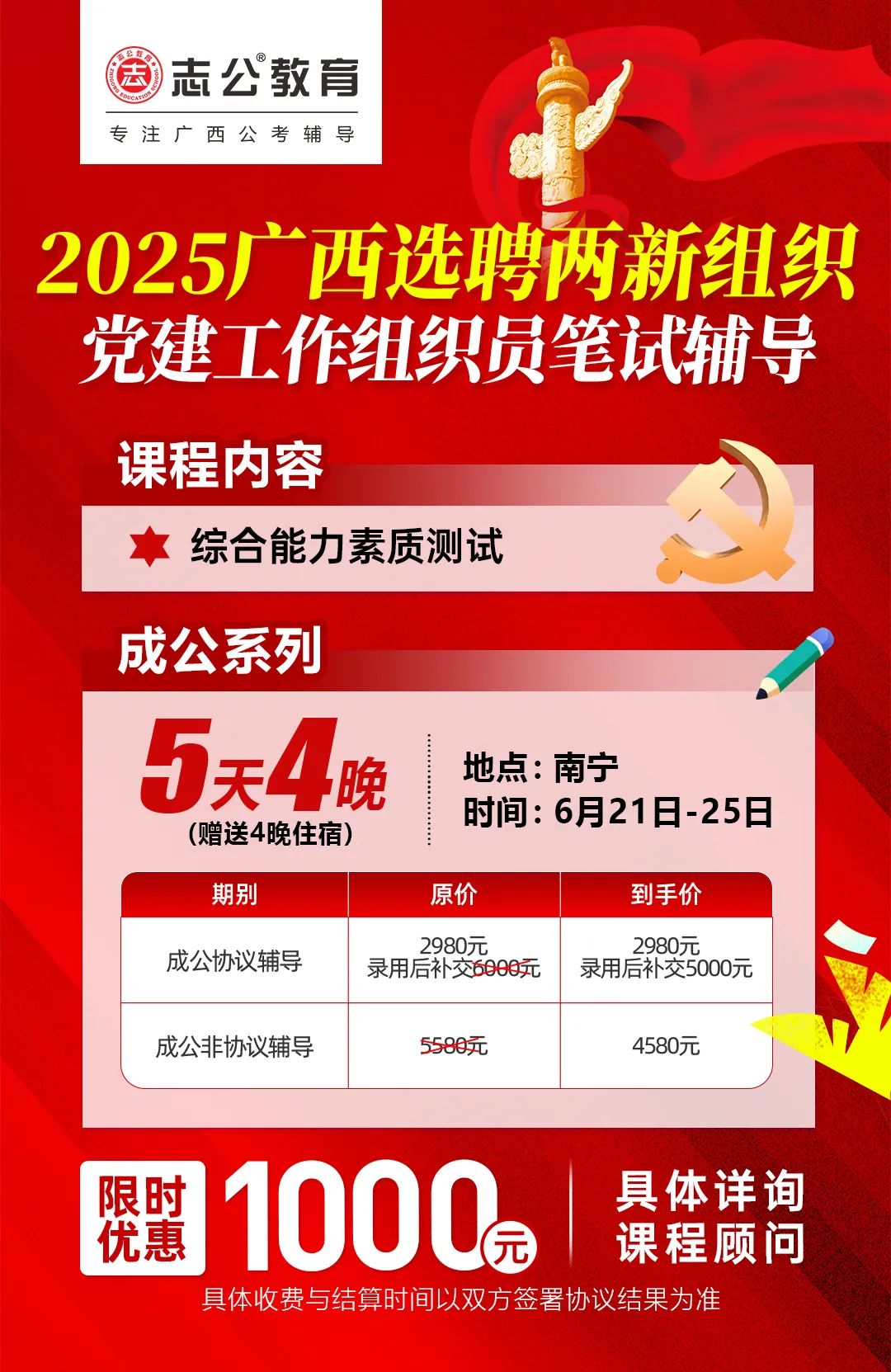 報(bào)名入口開通!2025年廣西壯族自治區(qū)選聘兩新組織黨建工作組織員今起報(bào)名,附免費(fèi)備考資料!