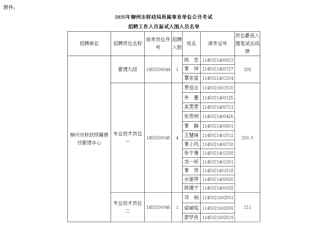 附件:《2025年柳州市財(cái)政局下屬事業(yè)單位公開(kāi)考試招聘工作人員面試入圍人員名單》