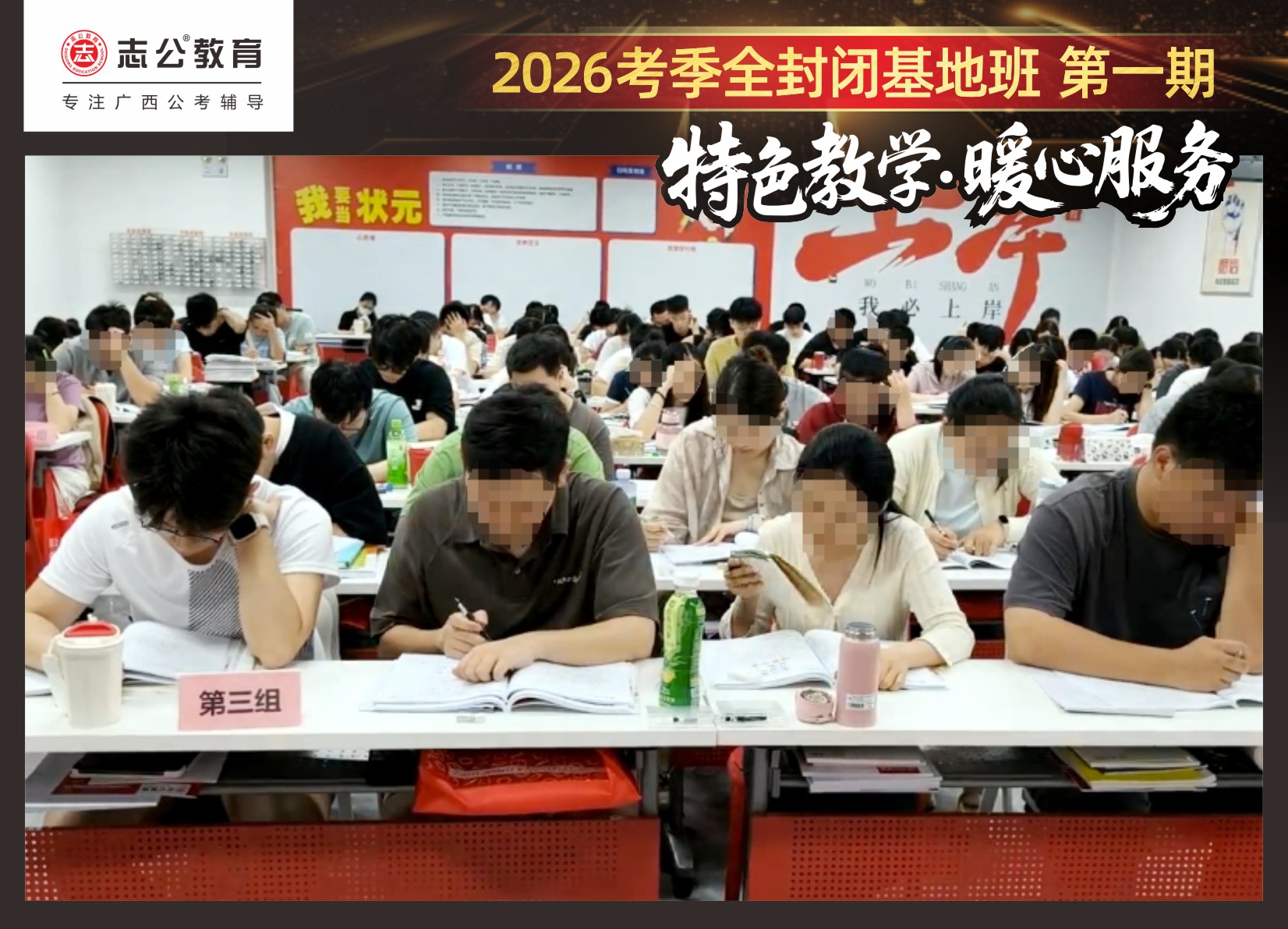近日,志公教育基地班正式開課后,學(xué)員們?nèi)孢M(jìn)入緊張而有序的封閉式備考狀態(tài)。為確保每一位學(xué)員都能在最佳狀態(tài)下高效備考,志公教育不僅提供了優(yōu)質(zhì)的教學(xué)資源和師資團(tuán)隊(duì),更從住宿環(huán)境、飲食健康、學(xué)習(xí)空間、紀(jì)律監(jiān)管、心理關(guān)懷、激勵(lì)機(jī)制等多個(gè)維度出發(fā),精心打造了一系列保障措施,確保每一位學(xué)員都能在最佳狀態(tài)下備考,真正實(shí)現(xiàn)“學(xué)得安心、住得舒心、吃得放心”。