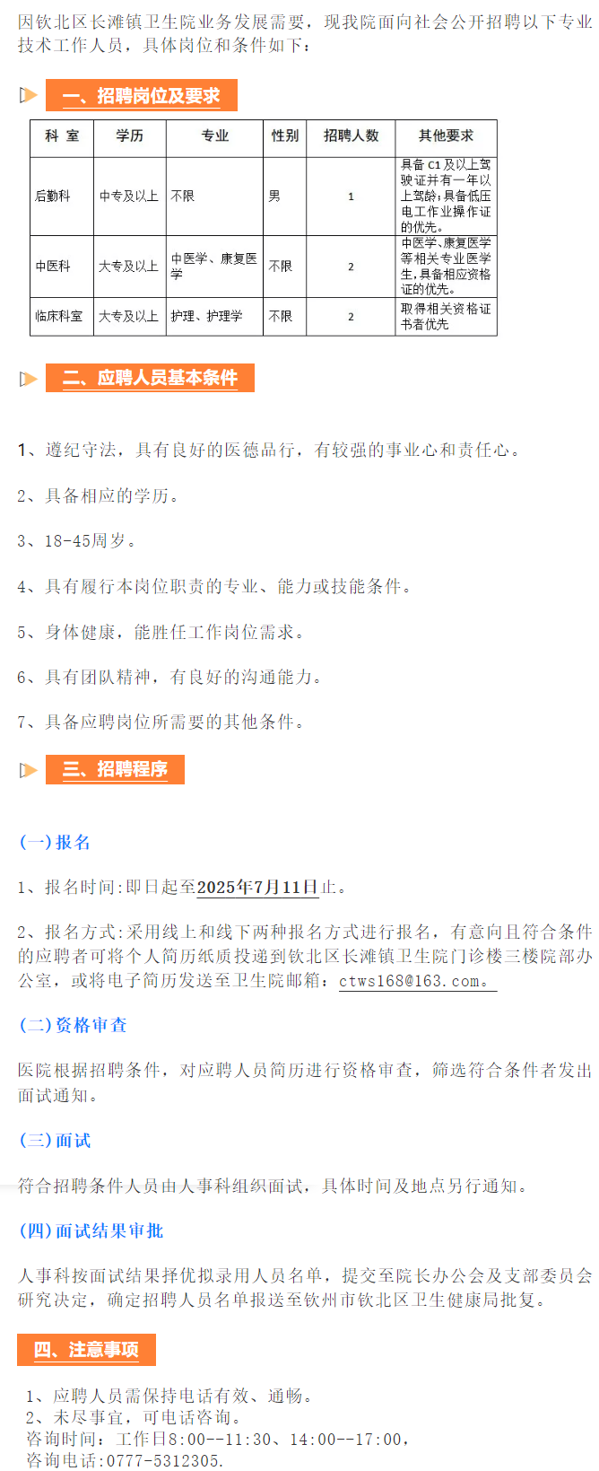 2025年欽北區(qū)長灘鎮(zhèn)衛(wèi)生院關(guān)于招聘編外人員的公告