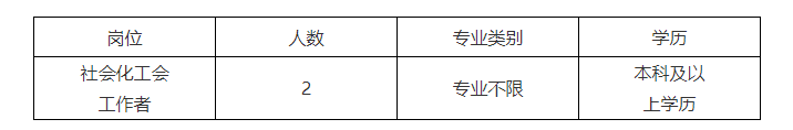 為進(jìn)一步加強(qiáng)工會(huì)工作,我會(huì)根據(jù)自身工作需求,現(xiàn)面向社會(huì)公開(kāi)招聘社會(huì)化工會(huì)工作者2名?,F(xiàn)將招聘的有關(guān)事項(xiàng)公告如下:
