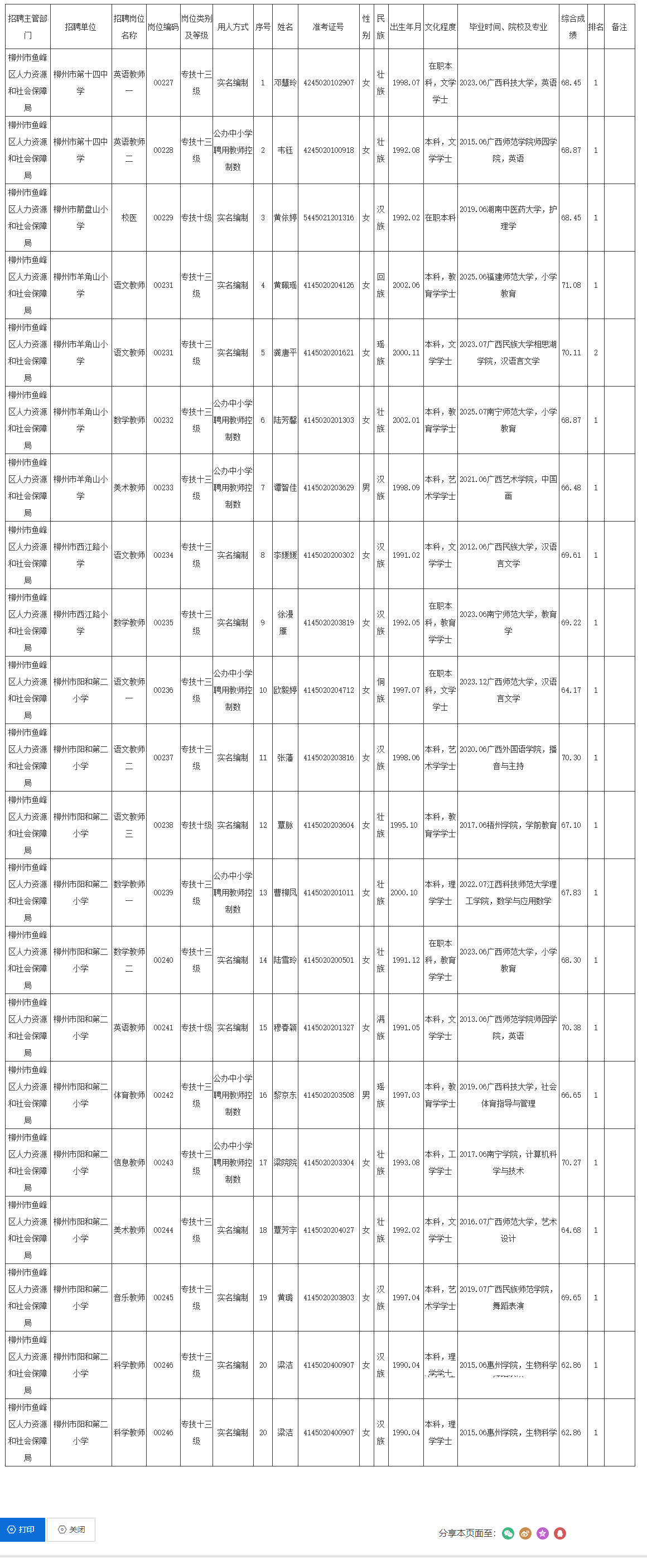 2025年柳州市魚(yú)峰區(qū)中小學(xué)校公開(kāi)招聘工作人員擬聘用人選公示(第二批)