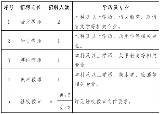 2.女教官:大專(zhuān)及以上學(xué)歷,有駐校教官工作經(jīng)歷或宿管工作經(jīng)歷。(退役軍人,軍警司法院校畢業(yè)生,體育專(zhuān)業(yè)大專(zhuān)以上畢業(yè)生優(yōu)先)