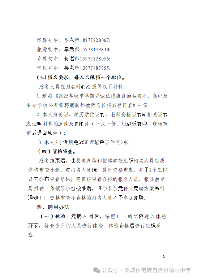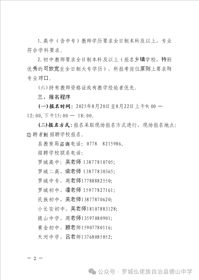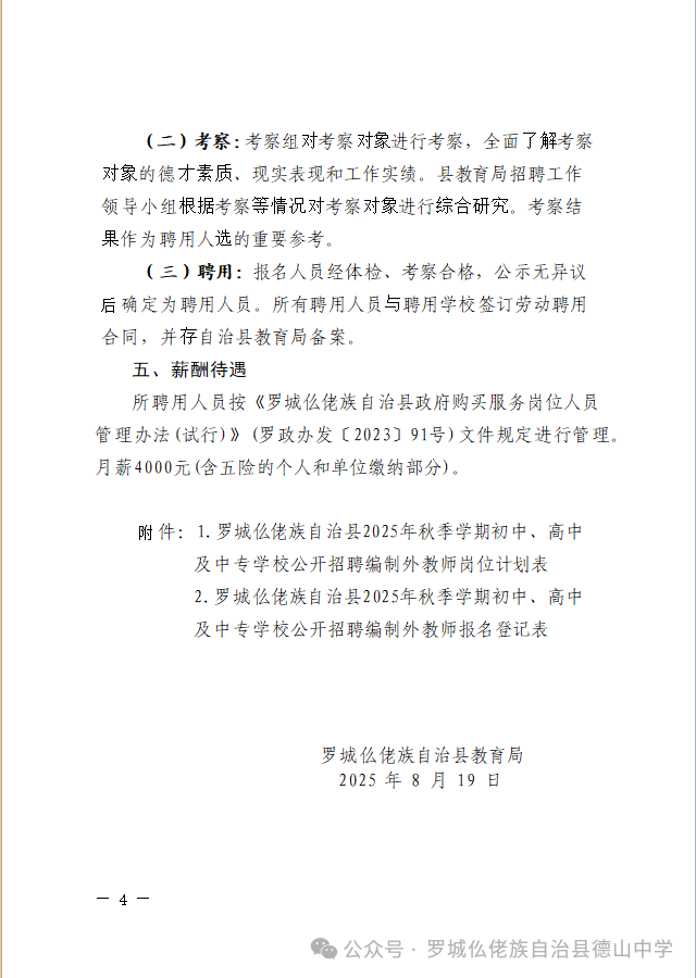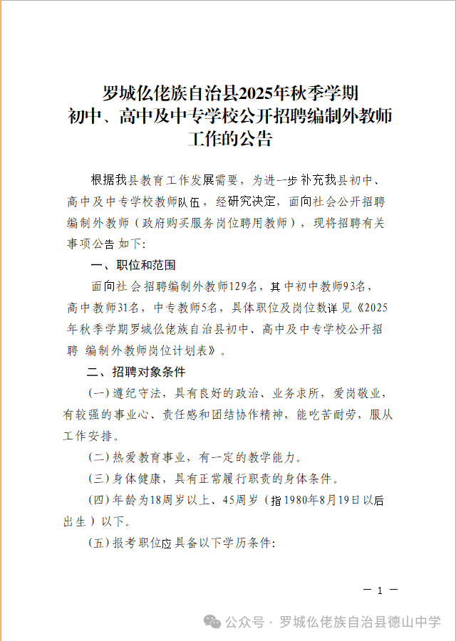 原文標(biāo)題:羅城仫佬族自治縣2025年秋季學(xué)期初中、高中及中專學(xué)校公開(kāi)招聘編制外教師工作的公告