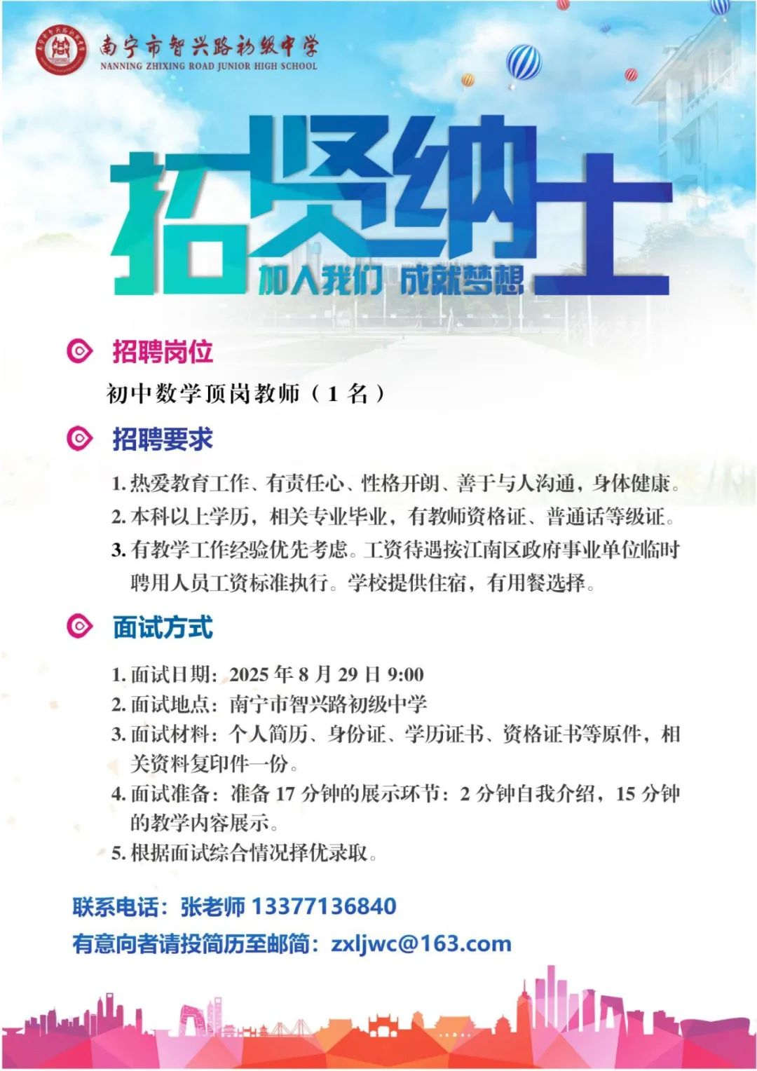 2025年南寧市智興路初級中學秋季學期招聘公告