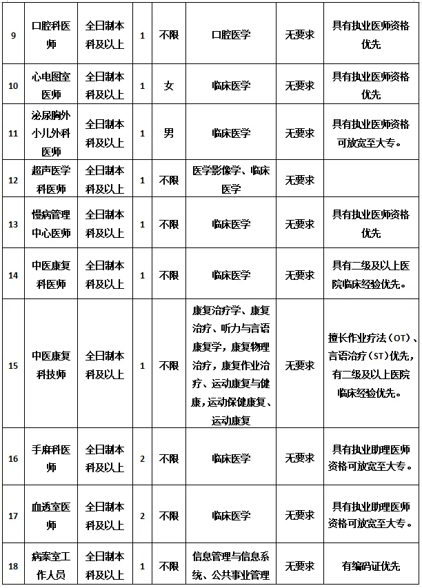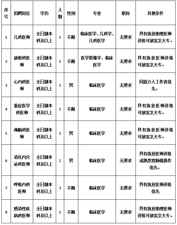 6. 年齡18-35周歲,具有主治醫(yī)師資格可放寬至45周歲。