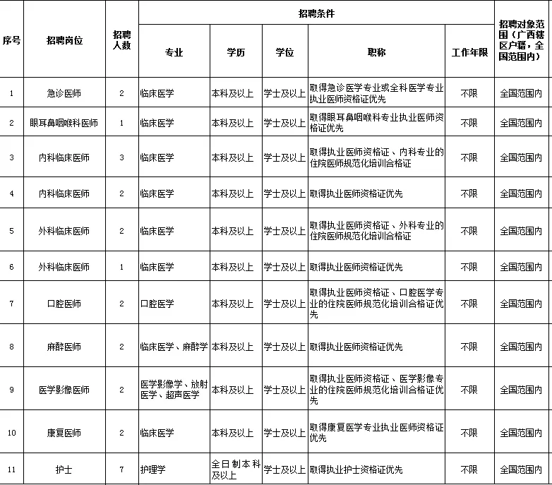 6.具備相應的學歷和學位,各專業(yè)技術(shù)崗位須取得相應的執(zhí)業(yè)準入資格或?qū)I(yè)技術(shù)資格,且執(zhí)業(yè)范圍符合專業(yè)技術(shù)需要;