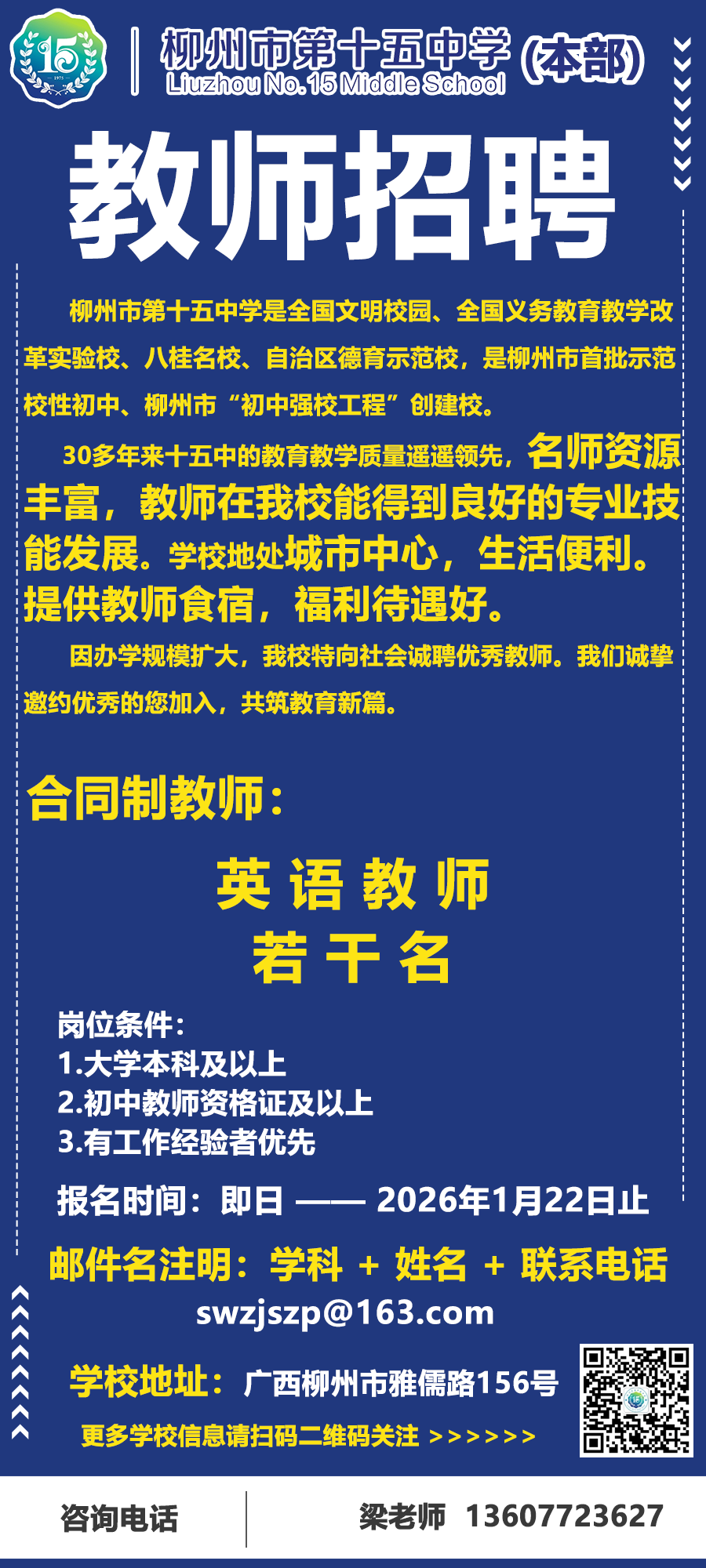 原文標(biāo)題:柳州市第十五中學(xué)本部招聘公告