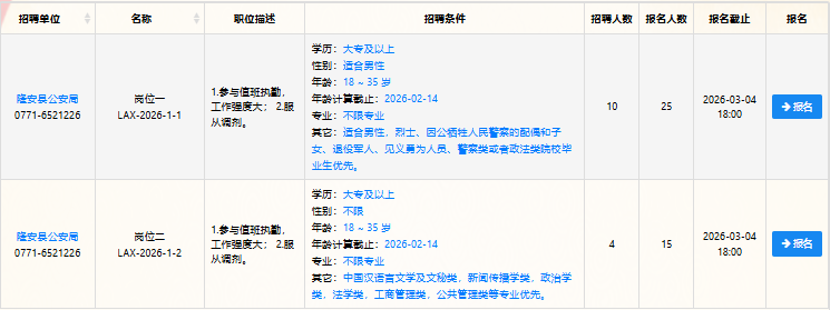 附件:1.隆安縣公安局2026年度公開招聘警務(wù)輔助人員職位計劃表